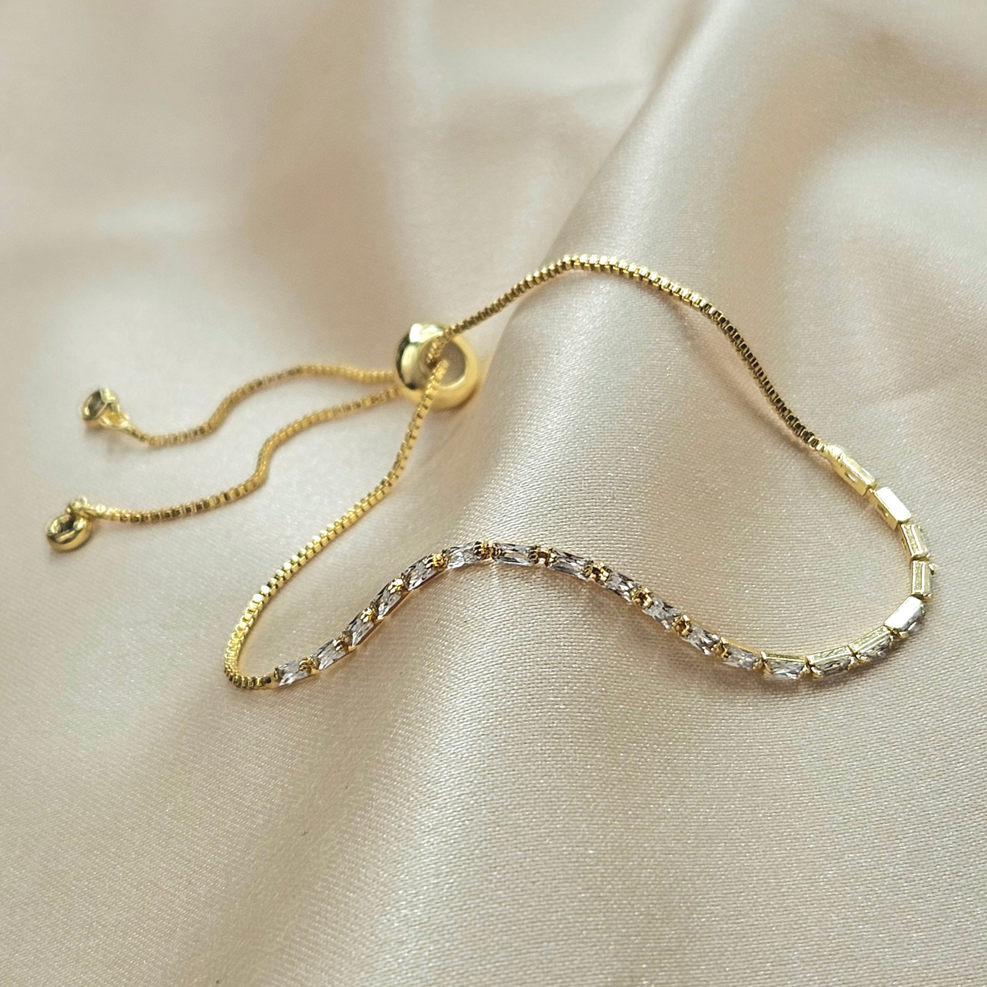 This dainty, adjustable bracelet is a shimmering addition to your jewelry collection! The sleek, shiny design makes it a timeless piece you'll love for years. Plus, its adjustable fit ensures a perfect fit every time.